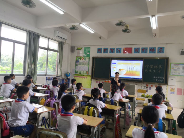 開學的第三周,南朗鎮欖邊小學在升旗儀式上開展“珍惜糧食,拒絕浪費”啟動儀式,六(2)班的學生代表進行主題旗下講話,呼吁廣大師生節約糧食,珍惜能源,弘揚勤儉節約的優良傳統,引導廣大學生發揚艱苦奮斗、勤儉節約的作風,養成健康文明的生活習慣。啟動儀式后,各班開展“珍惜糧食,拒絕浪費”主題班會。班會伊始,班主任們以視頻展示了餐桌上的米飯來源,它要經過十個工序:播種、拔秧、插秧、收割、打谷、擔谷、曬谷、車谷、碾米、煮飯,最后才能被端上飯桌。這個過程,用視頻的沙畫展示,只需短短的2分多鐘,可真正要農民伯伯經歷的話,那就絕非簡單了,其中的汗水、精力、時間,還有當中要親歷的風吹雨打、日曬雨淋,孩子們都是無法理解的,老師們只能引導學生去想象……
