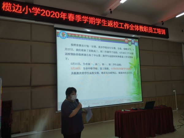 為切實做好新冠肺炎疫情防控工作,提高應對新冠肺炎疫情的快速處置能力,確保“安全、平穩、有序”返校復學,南朗鎮欖邊小學于5月8日下午,在欖邊小學階梯室召開了2020年春季學期返校復學全體教職員工防疫培訓會。