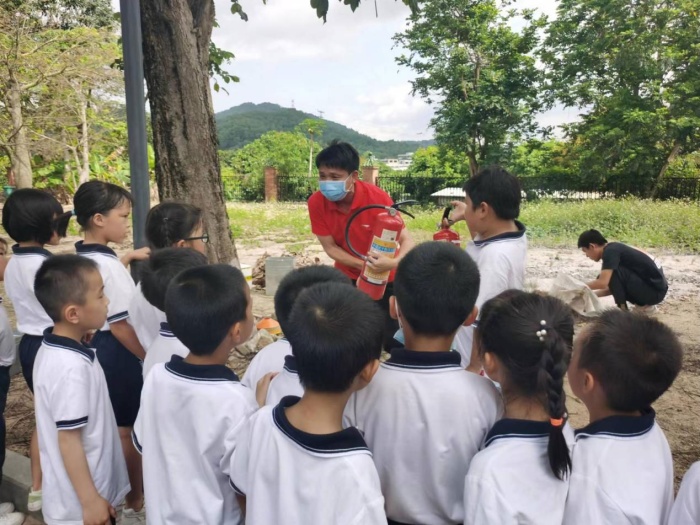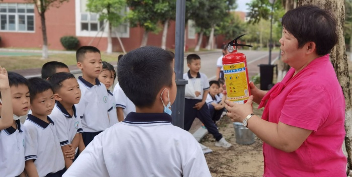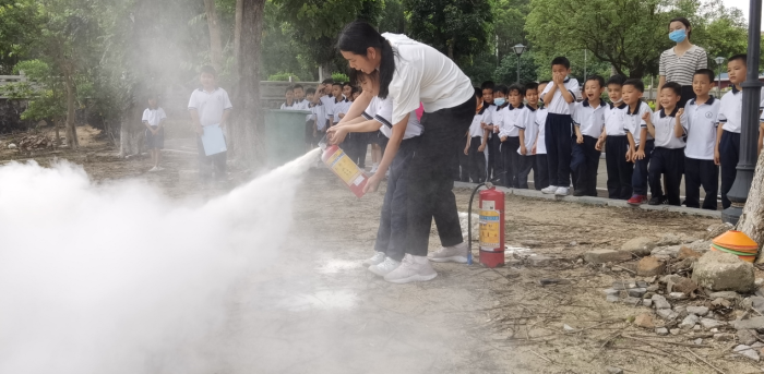 之后袁少平校長對演練情況進(jìn)行總結(jié),對同學(xué)們在應(yīng)急演練中聽從指揮、反應(yīng)迅速進(jìn)行了表揚(yáng),希望同學(xué)們在今后每月一次的演練中表現(xiàn)得更好。接著學(xué)校組織了一年級小朋友到僑心林進(jìn)行滅火器的使用演示。袁少平校長、吳振發(fā)主任、李洪靜主任現(xiàn)場講解了滅火器的使用方法,向孩子們演示了如何使用滅火器,并邀請小朋友上場實(shí)操,整個過程學(xué)生學(xué)有所得。