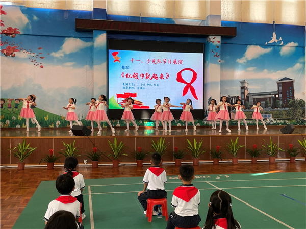 活動(dòng)中,翠亨小學(xué)的隊(duì)員們還帶來了激情洋溢的詩朗誦《請(qǐng)黨放心 強(qiáng)國有我》和舞蹈《紅領(lǐng)巾飄起來》,贏得現(xiàn)場(chǎng)陣陣掌聲;欖邊小學(xué)隊(duì)員們帶來小組唱《大灣區(qū)少年》,表達(dá)了作為大灣區(qū)的少先隊(duì)員,必將在歷史的洪流中乘風(fēng)破浪、揚(yáng)帆啟航的夢(mèng)想與決心。最后,在街道總輔導(dǎo)員凌慧平老師的帶領(lǐng)下,在鮮艷的隊(duì)旗下,隊(duì)員們進(jìn)行了呼號(hào)。 隨著退隊(duì)旗的進(jìn)行,本次活動(dòng)完滿結(jié)束。