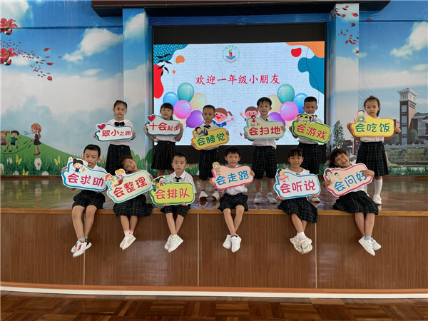 首先,袁少平校長進行了熱情洋溢的新學期致辭暨思政第一課,回顧暑期重大事件:河南暴雨、疫情防控、東京奧運會、“雙減”政策,感悟華夏子孫面對困難無所畏懼的精神品質(zhì),勉勵大家要努力成為新時代背景下有目標、會學習的學生。緊接著對剛?cè)雽W的一年級新同學表示歡迎,在袁校長的諄諄教誨中,一年級新生喊著整齊激揚的口號亮相。嘹亮的口號聲,昭示著新的學期,他們已經(jīng)準備好成為一名自信的小學生了。