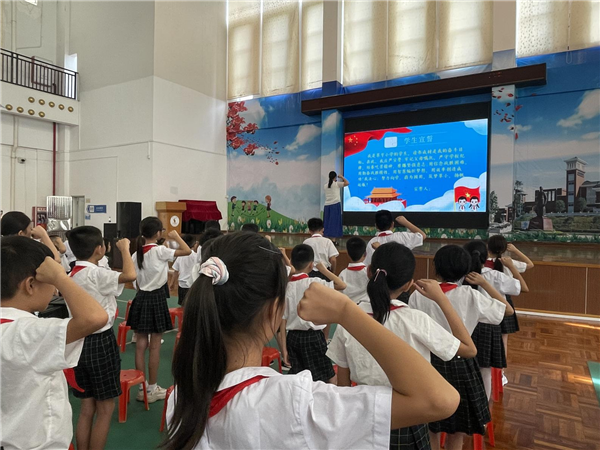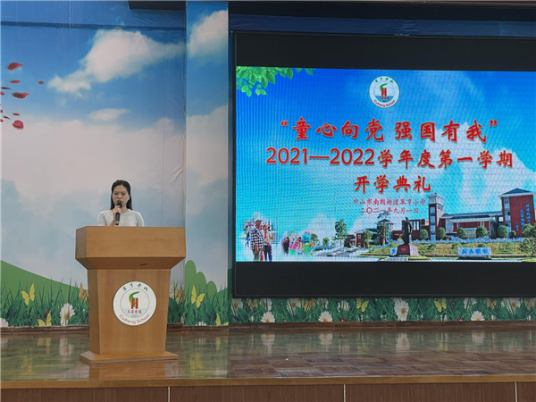 盛開的花卉沐浴晨光,翠亨小學如期迎來開學日,沉寂了一個暑假的校園變得活力滿滿。2021年9月1日上午,翠亨小學全體師生在藝體館隆重舉行以“童心向黨 強國有我”為主題的開學典禮。