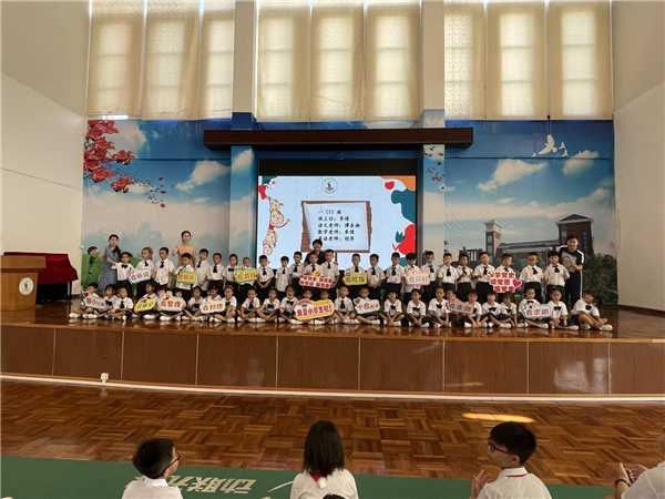 最后環(huán)節(jié),李文敏老師作為新教師代表發(fā)言,分享了孫中山先生“買書比買吃的還重要”的小故事,激勵學生勤思樂學。接著17位新教師也帶來一段青春可愛的自我介紹舞曲,并且在袁校長的帶領下莊嚴宣誓,決心做“四有”好教師,為黨和人民的教育事業(yè)努力奮斗!