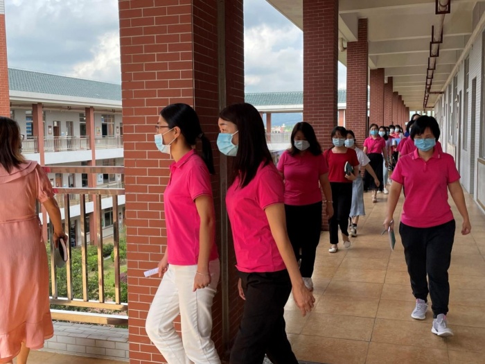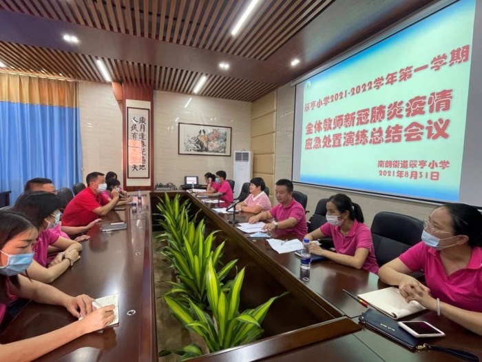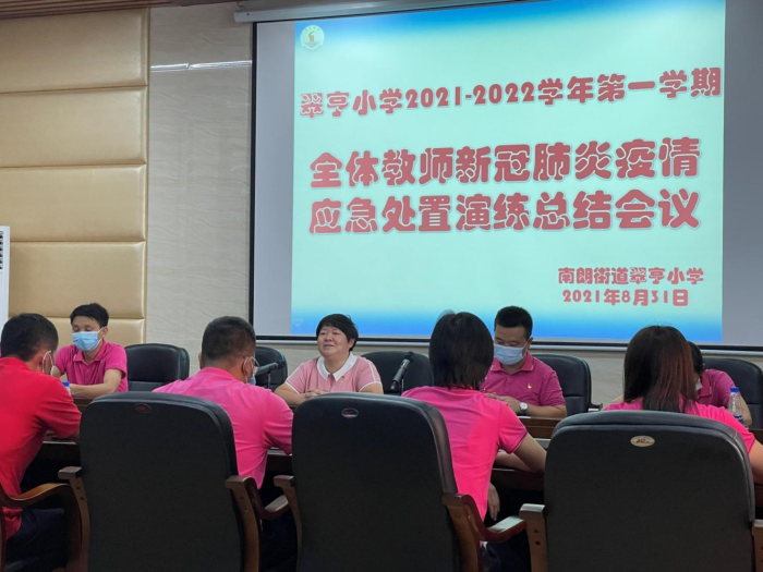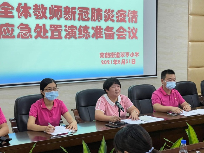 為嚴抓校園安全管理,做好疫情防控工作,全面提升疫情防控組織協調和應急處置能力,2021年8月31日上午,翠亨小學全體教師、職工代表以及六(1)班部分學生代表在學校里舉行了新冠肺炎疫情應急處置演練。