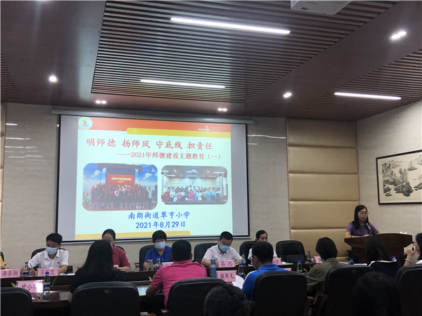開學在即,為落實新學期工作安排,確保開學工作有條不紊地進行,2021年8月29日上午,南朗街道翠亨小學全體教師齊聚教師會議室,召開2021-2022學年度第一學期第一次全體教師大會,會議由黃瑞陽主任主持。
