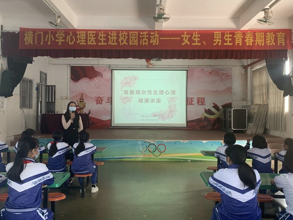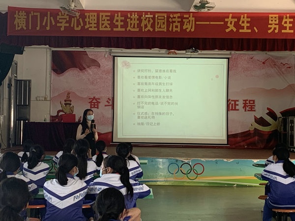 為促進青少年的健康成長,讓他們了解青春期的知識,順利度過青春期,2022年4月20日下午3點,橫門小學在南朗街道教育和體育事務中心的支持下,迎來了中山市第三人民醫院心理治療師黃妙妃醫生為四至六年級女生開展了青春期女性生理心理健康講座。