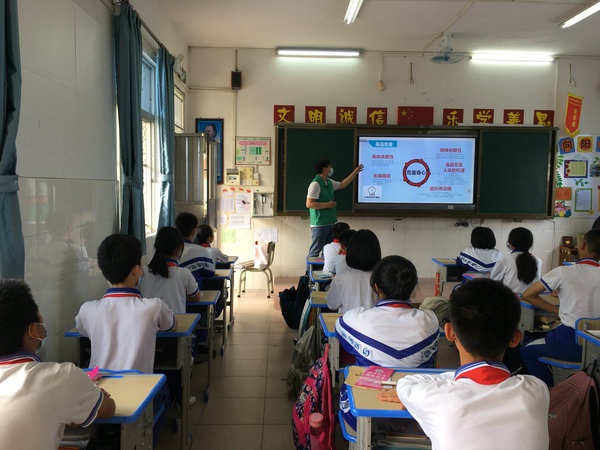 禁毒社工首先告訴同學吸毒會誘發各種犯罪行為,嚴重威脅社會的安定。在中國登記在冊的吸毒人員中,年齡最小的竟只有11歲,未成年人是毒品最易感染的群體,同時又是受害最深的對象。課堂上,禁毒社工利用生動活潑的互動方式引導同學們了解毒品知識、認清毒品危害、掌握識毒技巧、抵制毒品誘惑,同時播放吸食毒品的動畫,讓同學們了解吸食毒品后產生的后果,并用真實案例提醒同學們要警惕新型毒品,如何拒絕毒品等內容展開教育。