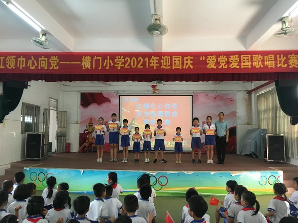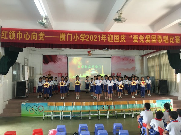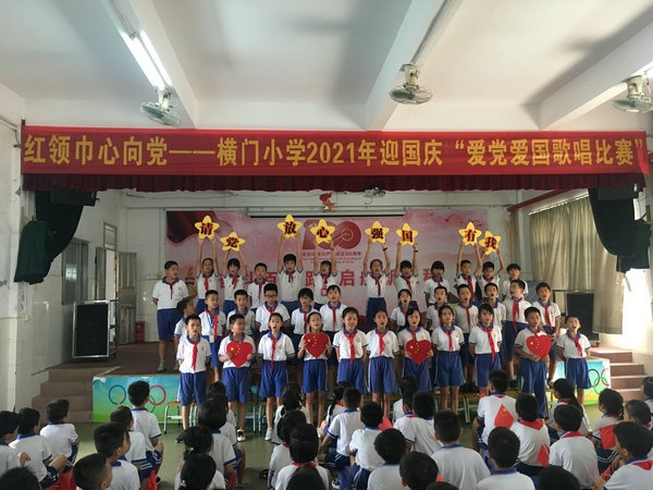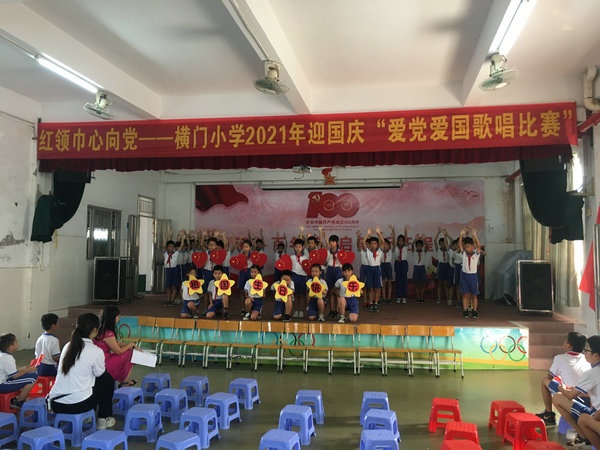 金秋陽光明媚,十月云淡氣爽。普天同慶,為祖國祝福;舉國上下,為母親喝彩。2021年是中國共產黨成立100周年,中華人民共和國成立72周年,為激發師生們的愛黨愛國熱情,促進校園精神文明建設,豐富校園文化生活,扎實深入開展黨史學習教育,開展愛國主義教育,2021年9月30日下午,南朗街道橫門小學舉辦“學黨史,跟黨走,紅領巾心向黨——愛黨愛國歌曲歌唱比賽”。