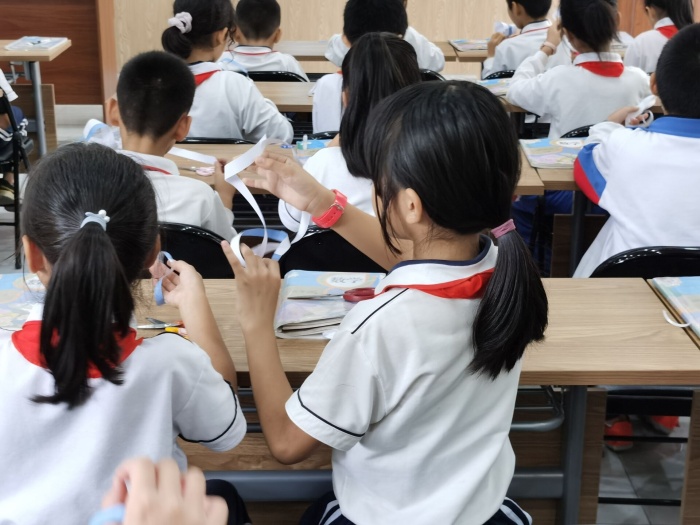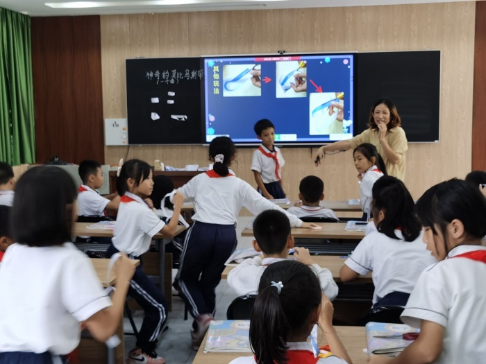 接著,由四年級組許素貞老師進行課例展示《神奇的莫比烏斯帶》。課堂上許老師笑容甜美,從容淡定,通過動手操作,猜一猜、剪一剪、議一議、說一說等一系列實踐活動,讓學生徜徉神奇有趣的學習中,從而深深體驗到莫比烏斯帶的神奇,充滿探索味與體驗味,充分展示了數學有趣好玩的巨大魅力,激發了學生喜歡數學,愛數學,學好數學的熱情。
