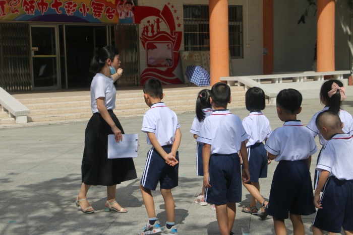 第二部分,8月30日上午8:30到11:00,一年級新生到校參加幼小銜接培訓。一年級老師精心策劃,用心準備,熱情地迎接學生的到來。老師們帶著學生參觀校園,介紹學校,講解注意事項;老師們以身作則,示范引領,指導學生學習常規習慣、集隊行進。短短兩個多小時,一年級新生漸漸熟悉校園,養成一定的行為規范,為正式開學奠定了基礎。