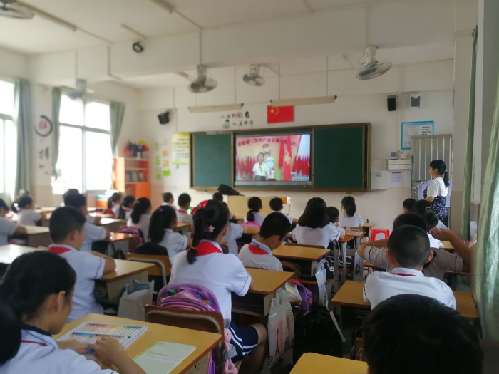 老師,在隊員腦海里是個怎樣的一個影子呢?全體師生通過大屏幕,欣賞教師節沙畫:《老師的影子》。手執寸余粉筆,躬耕三尺講臺,教書育人,默默無聞,這便是老師們的寫照。