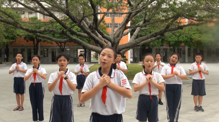 為了表達云衢小學全體隊員對教師的感恩之情,云衢小學大隊干部代表全體隊員為老師們送上一曲手語歌《聽我說謝謝你》。其余隊員們也跟著一起做起手語操,表達自己對老師的謝意。