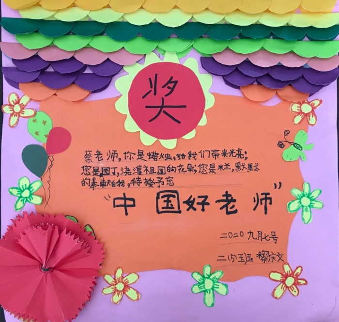 在隊員們成長的日子里,老師給他們頒發了一個個獎狀,記錄下了隊員的進步的足跡。在學校大隊部的組織下,全體隊員利用前幾天的休息時間,精心為老師們設計了一張張獨特的獎狀:最溫柔老師獎、故事大王獎、最幽默教師獎、千山萬水旅行獎等等。