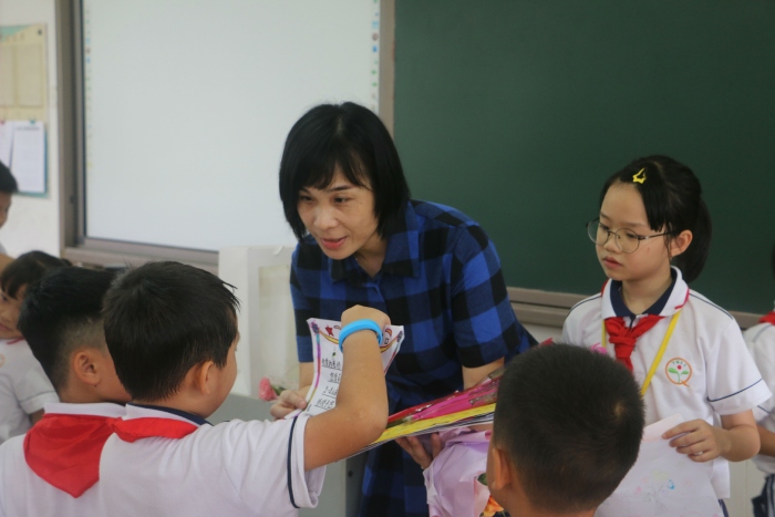 今天,隊員們紛紛走到自己老師身邊,為老師頒獎,見證老師的努力。老師們接過孩子繪制的獨一無二的獎狀時,幸福感和自豪感悄悄爬上心房。老師們紛紛表示將帶著孩子們的祝福繼續前行,引領隊員們健康成長。