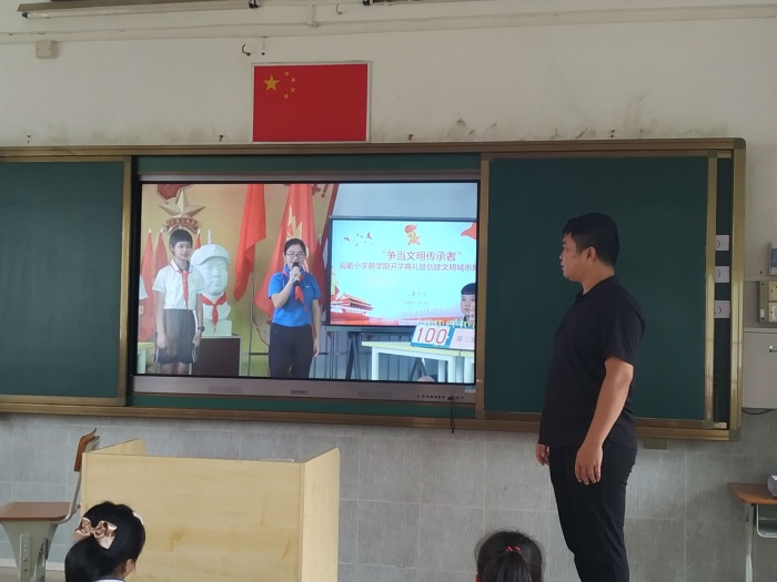活動(dòng)伊始,全體觀(guān)看了暑假期間云衢小學(xué)師生創(chuàng)建文明城市志愿活動(dòng),一個(gè)個(gè)忙碌的身影,一雙雙熱情的雙手,孩子們被屏幕中奉獻(xiàn)的精神、文明的舉動(dòng)感動(dòng)著。