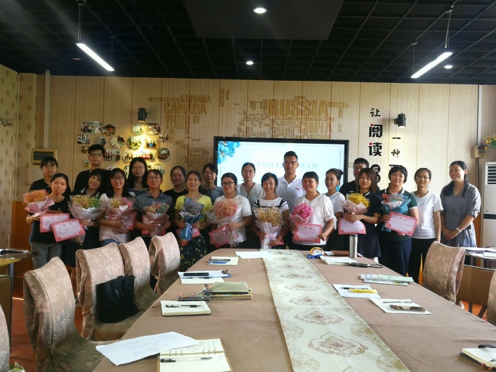 最后,會議還為“青藍結對”活動的指導老師頒發聘書,整個會議在給師傅頒發聘任證書和贈送美麗花束的活動中完美結束。
