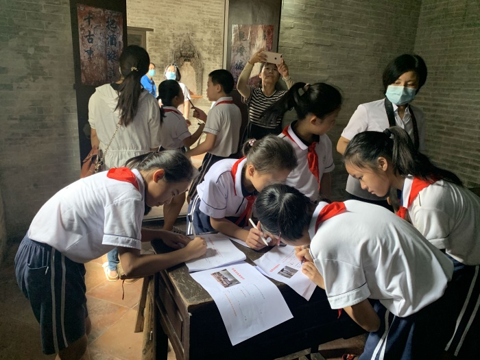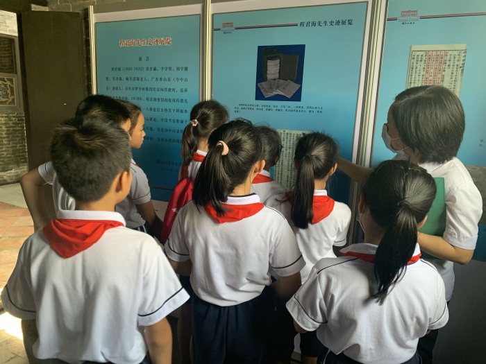 8月16日上午,11組親子家庭來到了位于中山市南朗鎮(zhèn)新田地大塘巷的程君海故居,又稱帥傅遺居。在講解員姐姐的帶領下,同學們帶著激動的心情一起探訪故居,深入了解了程君海故居的建筑特點,知道“帥傅遺居”牌匾的由來,參觀了程君海的臥室、書房以及展覽館等。在展覽館里,講解員姐姐結合圖片以及文字信息,為同學們細敘孫中山與程君海的師生情誼、程君海家族史以及程君海婉辭官職故事等等,讓同學們對程君海有了更深一層的認識。