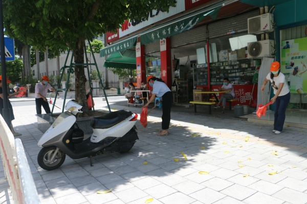 志愿者們早早就集中到學校前門口,對附近的街道進行大清掃,清理地面、清理雜物和垃圾,徹底清理衛生死角。他們一手拿著垃圾夾、一首拿著垃圾鏟等勞動工具,分工合作,頂著烈日熱火朝天地干起來。此次活動既是教師們吃苦耐勞精神和愛國主義情懷培育的有力踐行,同時也帶動示范了身邊的師生和群眾。