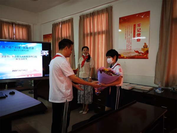 疫情期間,廣大醫護人員和人民群眾的抗“疫”故事,無不彰顯著忠誠、執著、樸實的英雄品格。為進一步夯實云衢小學隊員學習抗疫故事,以抗疫英雄為榜樣,爭做新時代好少年。6月15日上午云衢小學邀請了中山市人民醫院南朗分院抗“疫”英雄陳智偉醫生到校,為全體師生講述自己的抗“疫”英雄故事。