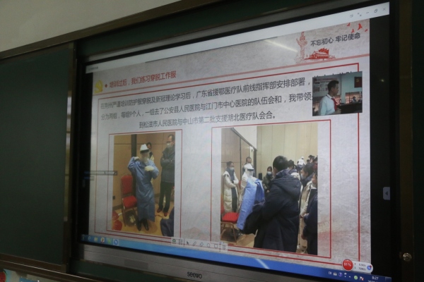 在宣講會上,陳醫生分享他和隊友抗疫路上的點滴故事,防護物資的緊缺、青菜搭辣椒的快餐、6小時值班連軸轉、成人后第一次穿紙尿褲、用溫暖喚起病人對生的渴望,一個個抗疫最前線的經歷打動了隊員的心。在陳醫生的娓娓道來中,隊員們深切感受到抗疫英雄的種種不易——疫情之下生活的艱辛,疫情之下的精神壓力,疫情之下的義無反顧。陳醫生認為,馳援一線,既是使命,也是榮耀,既是磨煉,也是守護,雖然艱辛卻感到身為醫護人員的職責與光榮,這必將成為自己人生中不可忘懷的經歷。最后,陳醫生呼吁隊員們要好好學習,鍛煉好身體,為國家繁榮昌盛而奮斗,將來成為建設國家的棟梁。