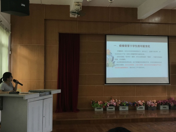隨后,許老師對如何進行學生心理輔導進行全面的介紹,通過案例讓老師們了解疫情下學生可能發生的心理變化;然后從“需掌握的學生情況”、“需關注的重點學生”、“談話的注意事項”三方面學習如何進行有效的學生心理普查。最后,學習“校園傷害事件的警示信號”的識別,為及早發現、盡早干預做好鋪墊。