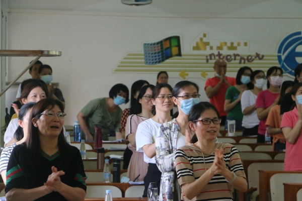 講座包括兩個方面:教師自我關懷、學生的心理輔導。培訓伊始,許婷婷老師帶領老師們進行了輕松活潑的拍拍操,老師們在歡樂的活動中愉悅身心。緊接著,許老師就從自我關懷介紹了幾個方法:包括提前做好心理調適、合理安排工作、接納并管理自己情緒、蝴蝶擁抱等方法,老師們還紛紛嘗試了蝴蝶擁抱的方法,嘗試和自己的內心對話,調節自我的情緒。