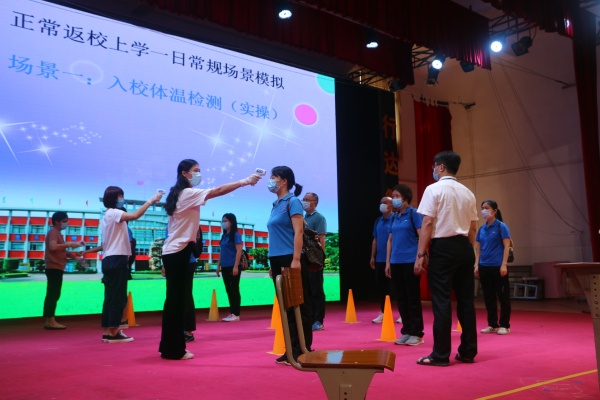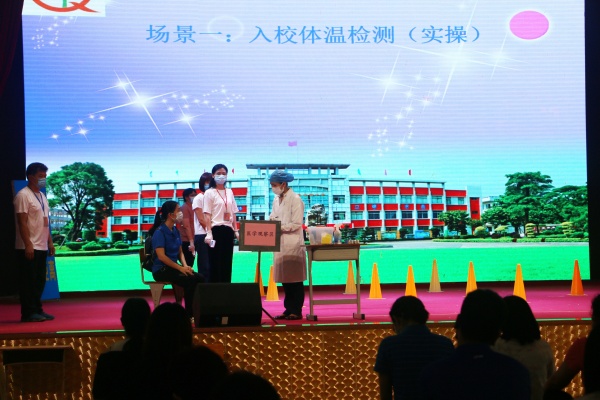 下午兩點,云衢小學全體教職員工集中學校藝體中心。阮連鳳副組長首先講解了各個場景的操作要點,共五個場景:入校體溫檢測場景;師生進入學校后人員分流場景;教學區作息場景;學生用餐場景。學生異常情況處置。演練活動開始,各小組成員迅速到位,做好突發事件應急準備工作。所有人員按照既定預案,行動快速,配合密切,分工明確,有條不紊,準確高效地完成了此次演練任務。