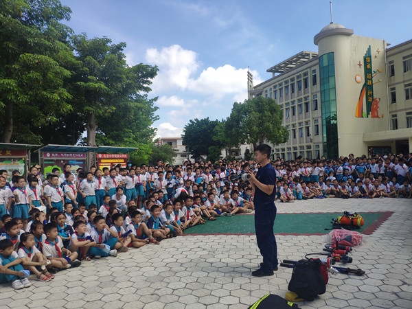 緊接著,南區(qū)消防中隊的消防員在教學(xué)樓前的小廣場上向師生介紹了一系列的消防裝備,如氧氣筒、消防防護(hù)服、液壓剪、擴(kuò)張器、絕緣剪、多功能水槍、滅火服、手動破拆工具組等。消防員還親身示范這些裝備的使用方法,部分學(xué)生代表學(xué)習(xí)了消防裝備的使用方法,學(xué)生們在體驗中增長了消防知識及技巧,強化了安全意識。