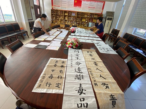6月20日,全校開展了“無毒青春 健康生活”為主題的書法比賽活動。一到六年級每班三位學生參加,在規定時間內書寫禁毒詩一首。比賽現場選手們一個個凝神靜氣,將注意力都集中在筆尖,在專注每一筆畫的同時關注整首詩的結構和諧。此次書法比賽,以傳統書法為載體,廣泛宣傳禁毒知識,讓他們在創作和欣賞藝術作品的同時,提高識毒、防毒、拒毒的能力,為深入推進6·26毒品預防教育營造良好氛圍。