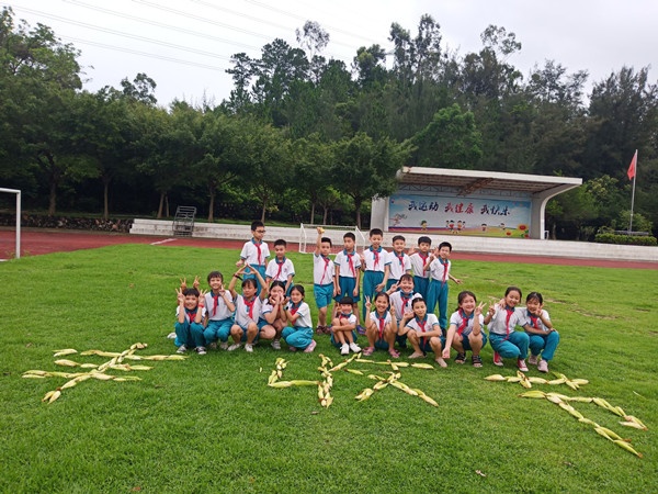 同學們互相配合,有的負責摘玉米,有的負責剝玉米,在勞動中感受種植帶來的喜悅。摘完玉米后,有的班級把摘到的玉米擺放成“豐收節”“喜悅”等字樣,在大操場上拍照留影。學校家委會也對本次活動大力支持,各家委分工合作,部分家委把玉米帶回家煮熟,有的把玉米榨成玉米汁分給同學們,還有的同學自己學做玉米餅,校園內傳遞著豐收的喜悅。