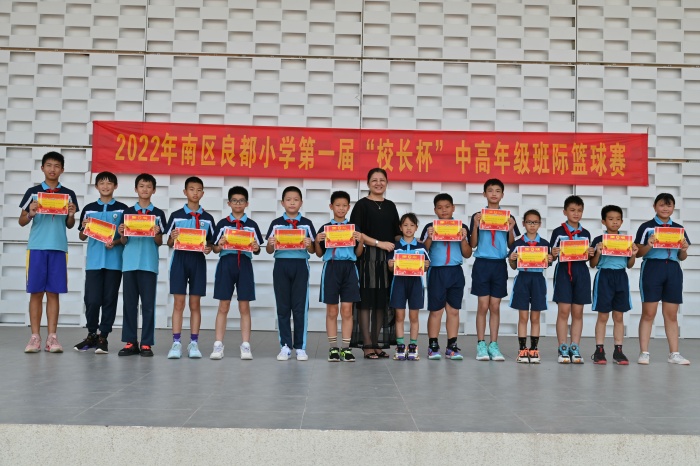 激情與緊張并存,友誼與比賽同在。激烈的角逐后,迎來了激動人心的頒獎典禮。林泳瑤校長為獲獎隊伍和最佳球員頒獎,現場一片歡呼!此次頒獎典禮,鼓舞人心,激發了全體學生參加體育鍛煉的熱情。最后林校長高度贊揚了全體運動員頑強拼搏的執著精神和積極進取的團隊精神,號召全體良小學子要積極投入到體育鍛煉中,苦練籃球基本功,進一步發揚團隊合作精神,擦亮良小“全國青少年校園籃球特色學校”的牌匾。