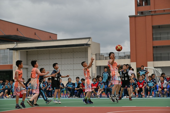 6月20日下午,比賽現場熱鬧非凡,氣氛無比高昂與歡騰。林泳瑤校長作了開幕式致詞,鼓勵孩子們奮力拼搏、勇奪冠軍,并預祝比賽圓滿成功。開幕式致辭后,林泳瑤校長和鄧定波主任分別到球場中央為第一場籃球比賽舉行跳球儀式。哨聲一響,五(1)班和五(2)班拉開了本次籃球比賽的序幕,雙方都全身心投入到比賽中,進行激烈的比拼。
