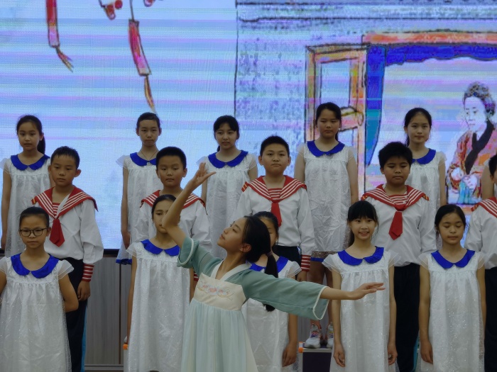 良都小學合唱團的孩子們為參與活動的領導和老師,吟誦了《游子吟》、合唱了《讀唐詩》。悠揚的古箏聲、唯美的古代舞蹈,配上清新的鋼琴聲,讓學校多媒體教室充滿濃濃的春意,讓校園盈滿濃濃的傳統文化氣息。