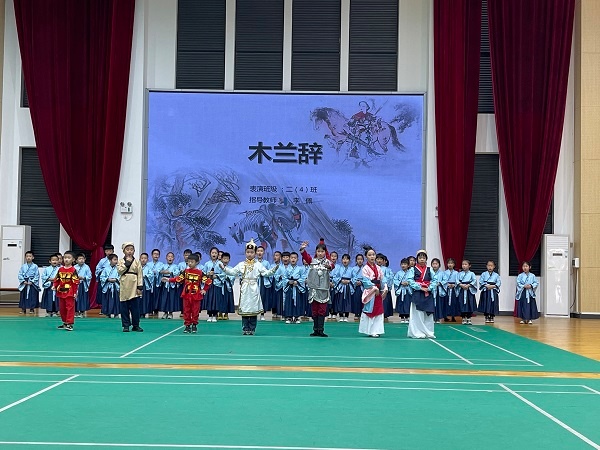 活動從節目展示開始。二(4)班聲情并茂、慷慨激昂的《木蘭辭》展演讓在場師生感受到吟誦余韻悠長的別樣魅力;鏗鏘有力、整齊劃一的《馬家槍》展現出馬嶺學子昂揚向上的精氣神!