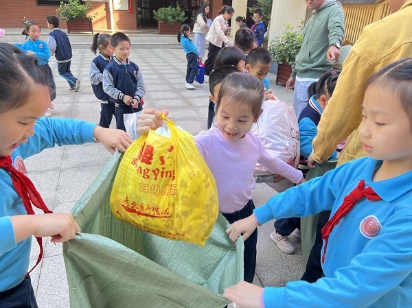 活動當(dāng)天,同學(xué)們帶來了大袋小袋的衣物進校,排著隊把物品分類排隊投放進編織袋,一件衣物、一雙鞋子、一個書包、一本書……匯聚著家長和孩子們的愛心。捐獻過程中,同學(xué)們臉上都洋溢著美好的笑容,體會著“予人玫瑰,手有余香”的幸福。