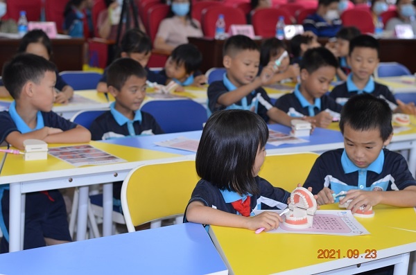 為更好地貫徹落實《學校衛(wèi)生工作條例》《健康口腔行動方案(2019-2025年)》和《健康中山行動(2020-2030年)》等有關(guān)要求,提高小學生口腔健康素養(yǎng)水平,降低兒童齲齒發(fā)生率,9月23日下午,2021年中山市教育系統(tǒng)“全國愛牙日”現(xiàn)場宣傳活動暨2021年小學生口腔健康服務項目正式啟動,本次啟動儀式由中山市教育和體育局主辦,中山市中小學衛(wèi)生保健所、南區(qū)馬嶺小學承辦。中山市教育和體育局三級調(diào)研員容彤、中山市中小學衛(wèi)生保健所黃思哲所長、南區(qū)教育和體育事務中心劉敏斯副主任、有關(guān)鎮(zhèn)街衛(wèi)生專干、各項目學校項目負責人、馬嶺小學二年級的師生一同參加了此次活動。