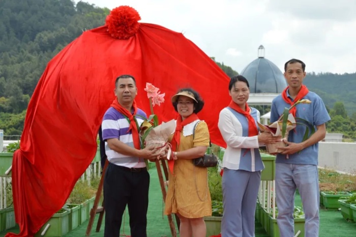 為豐富全校少先隊(duì)員的課余文化生活,引導(dǎo)隊(duì)員在天空農(nóng)場(chǎng)開(kāi)展勞動(dòng)實(shí)踐,了解農(nóng)業(yè)基本常識(shí),掌握簡(jiǎn)單的勞動(dòng)方法,增強(qiáng)隊(duì)員生活閱歷,豐富成長(zhǎng)和生活經(jīng)歷,培養(yǎng)動(dòng)手操作能力和熱愛(ài)勞動(dòng)、勤于實(shí)踐的思想品德,增強(qiáng)社會(huì)責(zé)任感,讓隊(duì)員感悟到勞動(dòng)帶來(lái)的樂(lè)趣,4月29日,竹秀園中心小學(xué)舉行天空農(nóng)場(chǎng)——竹憩園揭幕儀式。學(xué)校少工委主任李向平、學(xué)校行政、部分中隊(duì)輔導(dǎo)員、家長(zhǎng)代表、各班優(yōu)秀少先隊(duì)員代表參加此次活動(dòng)。