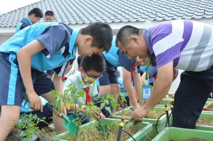 天臺(tái)上,由塑料筐分布好的小菜地顯得特別“精致”,學(xué)校給每個(gè)中隊(duì)都劃分了自己的“責(zé)任田”。少先隊(duì)員們已經(jīng)迫不及待的利用新學(xué)到的知識(shí)開(kāi)始了耕種,春光照耀下,孩子們揮灑汗水,投入勞作,感受勞動(dòng)帶來(lái)的成就感,體會(huì)勞作的樂(lè)趣。不僅培養(yǎng)了他們的動(dòng)手和團(tuán)隊(duì)協(xié)作能力,也讓隊(duì)員們感悟生命成長(zhǎng)、感受創(chuàng)造帶來(lái)的成就感。