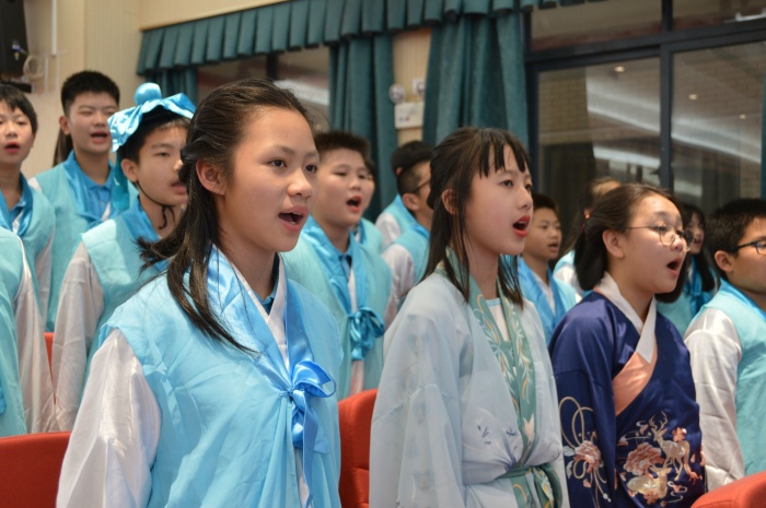 五(3)班的同學個個身懷絕技,五(6)班的同學也不甘示弱,他們帶來伴樂朗誦《水調歌頭》,讓人體會到兄弟之間深深的思念之情。