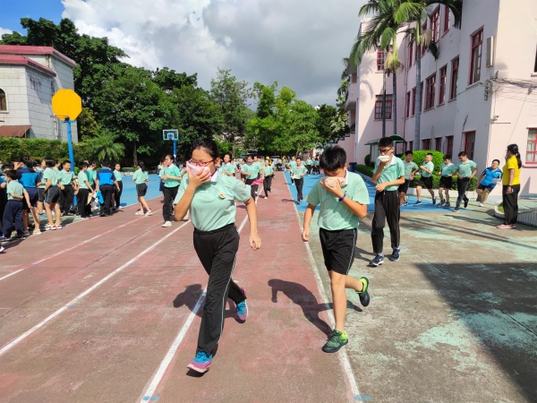 警笛響徹云霄,煙霧彈噴出一股股濃煙,學生們紛紛拿出濕毛巾捂住口鼻,彎腰低姿,按照指定路線有序地進行疏散,快速安全到達操場后,各班清點人數并上報總指揮,整個過程井然有序,人人各盡其責,充分體現出良好的消防安全逃生素質。