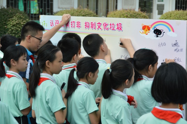 活動在莊嚴肅穆的升旗儀式后拉開帷幕。首先,由德育處主任陳福勇從毒品種類、吸毒對身體造成的損害以及青少年如何防止吸毒等方面做主題教育講話。通俗易懂的語言、深入淺出地為全體師生講述和剖析了毒品的危害,告誡師生認清危害,樹立自我保護意識。隨后,陳福勇主任帶領全體師生面向莊嚴的國旗宣誓:我是中華民族的兒女,不忘恥辱,堅決與毒魔作斗爭,珍愛生命,拒絕毒品,保證不吸毒、不販毒、不種毒,積極檢舉吸毒販毒行為,自覺抵御毒品的侵蝕,積極投身于禁毒斗爭行列,為國家禁毒事業作出自己應有的貢獻。宣誓結束之后,全體師生進行“遠離毒品,珍惜生命,堅決與毒品作斗爭”簽名活動。學校希望通過這一儀式,培養師生的禁毒意識,讓廣大師生自覺進入到禁毒的隊伍中來。