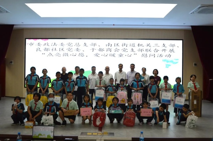 六一前夕,市委政法委黨支部、南區(qū)街道機關(guān)三支部、良都社區(qū)黨委、于都商會黨支部都來到該校開展“點亮微心愿,愛心暖童心”慰問活動,給孩子們帶來了書包、學(xué)習(xí)用具等禮物,南區(qū)關(guān)工委也把慰問金送到了困難兒童的手中。