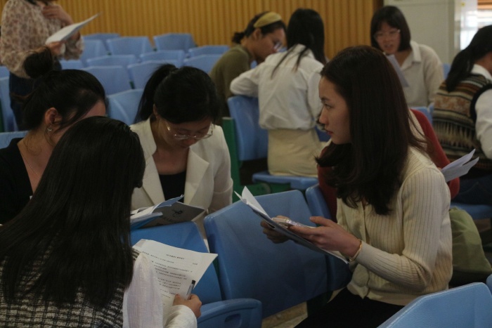兩節課后,工作坊的成員們先分小組進行評課交流,接著,小組派代表發言。通過課例觀摩與評課交流,學員們在專業知識上相互學習,取長補短,呈現了一場思維碰撞的盛宴。