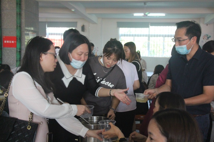 隨后,由班主任帶隊,引導各班家長來到學校餐廳進行餐廳體驗活動,學校按照平時給學生提供的飲食標準,讓家長真正了解孩子在學校的飲食情況。?最后,各班家長回到教室,在班主任的安排下,進行了各具特色的班級分享交流會。各班班主任和任課老師介紹了學生在校的學習、生活情況,就如何提升孩子的學習能力,如何讓孩子養成良好的習慣,如何讓孩子在德、智、體、美、藝、勞各方面得到全面發展,如何針對孩子的學習情況制定正確的教育教學方法進行了充分的交流。