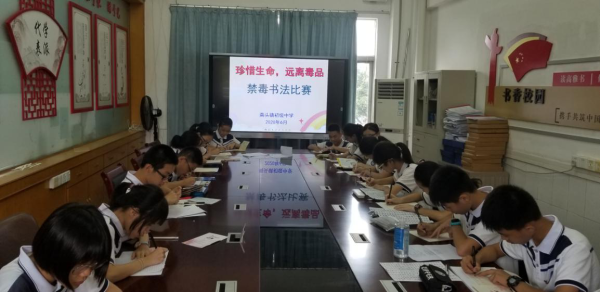 為了加強禁毒宣傳教育,使廣大學生認清毒品的危害,提高學生識毒、防毒、拒毒意識,自覺抵制毒品侵害;同時為了豐富校園生活,營造濃厚的校園文化氛圍,展現中國文化的博大精深。在第33個國際禁毒日來臨之際,6月5日下午,南頭鎮初級中學開展了一次以“珍愛生命 遠離毒品”為主題的禁毒書法比賽,初一級同學參與此次活動。