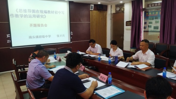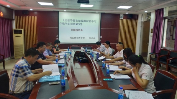 5月27日上午,南頭鎮初級中學為語文科組申報的省級立項課題《思維導圖在統編教材初中寫作教學的運用研究》舉行了開題儀式。學校領導高度重視,盧新泉校長出席了立項開題會,活動邀請到中山市教研室張寶華老師,南頭鎮教育事務指導中心的李劍輝老師,小欖鎮第一中學高開洪老師,古鎮鎮曹步初級中學余亞帶老師以及課題組全體成員悉數出席此次活動。