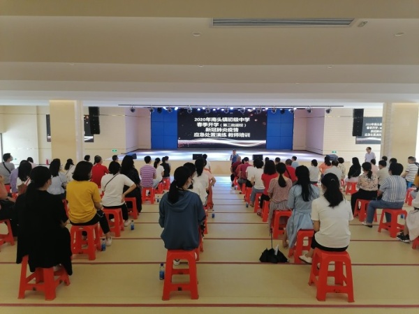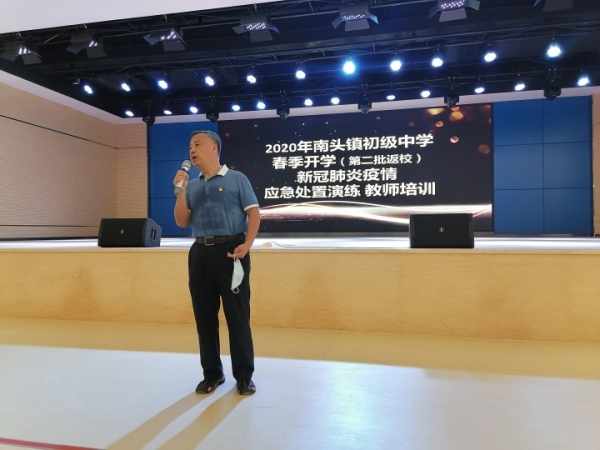 在第一批高三、初三學生順利返校,以及第二批師生核酸檢測完成的前提下,5月11日,中山市高一、高二,初一、初二學生返校,南頭鎮初級中學第二批教師于5月6日返校進行工作準備。2020年5月6日上午,南頭鎮初級中學開展第二批返校教師疫情防控培訓,初一、初二級全體教師參加培訓,培訓由毛賢偉副校長主持。