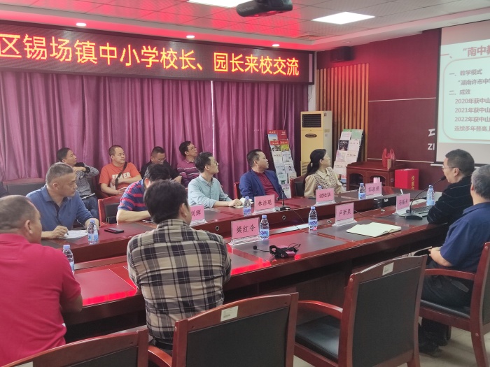 4月11日上午,揭陽市揭東區錫場鎮教育組林潔聰組長率錫場鎮中小學校長、園長等一行蒞臨南頭鎮初級中進行交流學習,南頭鎮教育和體育事務中心謝桂華主任,教研員李劍輝老師、郭淑娟老師陪同,南頭鎮初級中學盧新泉校長及部分行政熱情接待了交流學習組一行。