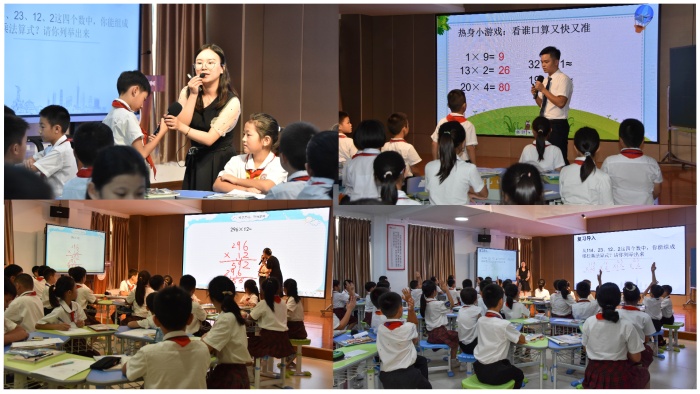 比賽秉著公開、公平、公正的原則。先集中抽簽,確定上課順序及班級,由鎮(zhèn)區(qū)六所學(xué)校的數(shù)學(xué)科組長擔(dān)任評委。決賽階段,采用同課異構(gòu)的授課方式,內(nèi)容為四年級數(shù)學(xué)上冊《三位數(shù)乘兩位數(shù)》。三位老師結(jié)合自己的理解與思考,從教學(xué)設(shè)計、教學(xué)方法、教學(xué)實(shí)施等多方面對同一授課內(nèi)容進(jìn)行了處理,為現(xiàn)場的評委和老師呈現(xiàn)出了風(fēng)格各異、精彩迭出的課堂,教師個性化的教學(xué)風(fēng)格在課堂教學(xué)中得到了充分的展示。