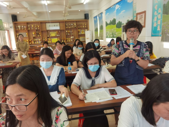 最后,南頭鎮教育和體育事務中心梁柳珍老師對本次課例進行了全面細致的點評。她首先闡述了認知的六個層次,指導教師們在課前、課中、課后分層次地設計問題,然后引領大家一起深入研讀教材,判斷本次課例中上課教師的一些問題設計是否精準有效。梁老師手把手的指導,引發了大家對備課時的教材研讀、精準提問等方面的深度思考。梁老師最后指出,希望教師們在今后的教學中都能認真研讀教材,并對照著教學目標檢驗自己的教學行為,努力打造高效課堂。